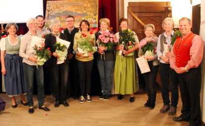 Den ersten 1. Platz belegte Angelika Wiesholzer, den 2. Platz teilten sich Klara Moser, Lisa Hörl, Monika Huber und Irmgard Pledl. Auch der 3. Platz wurde mehrfach vergeben, nämlich an Elisabeth Kronsteiner, Elisabeth Spöck und Peter Weyerer. Einen herzlichen Glückwunsch an alle Preisträger, sie wurden für Ihre Leistungen jeweils mit einer Urkunde, einem guten Tropfen Wein und einem schönen Blumenstock belohnt, die von erstem Bürgermeister Georg Huber überreicht wurden.