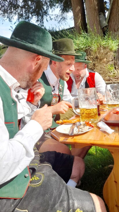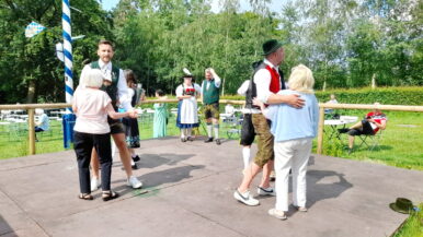 Dazu informiert der Verein: “Wir hatten über 200 Besucher und auch eine liebe Freundin, Hana Fabry aus Japan. Danach kam noch ein Filmteam aus Manchester für einen Schuhplattler Workshop. Weißblauer Himmel und ein schöner und gelungener Tag für alle”.