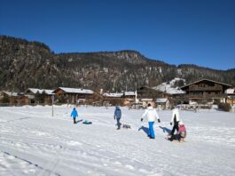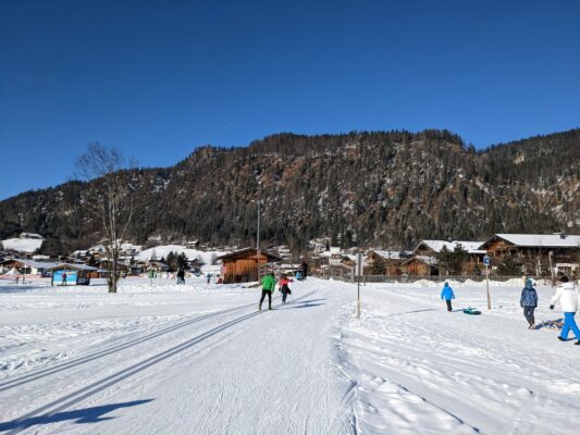 Sehr gute Bedingungen zum Wintersport herrschen zur Zeit im Premium-Wanderdorf Reit im Winkl. Der Winterwald zwischen Krautloider und Benzeck sowie die ruhig dahin fliessende Lofer präsentieren sich in einer traumhaft verschneiten Kulisse. Die Schneedecke beträgt derzeit ca. 20 Zentimeter, was für ausgezeichnete Bedingungen auf den Loipen, dem Rodelhang und dem Winterwanderweg sorgt. Auch der Himmel zeigt sich heute von seiner besten Seite und mit Temperaturen um die Null Grad Celsius in der Mittagszeit nach einer frostigen Nacht steht einem perfekten Tag in der Loipe nichts im Wege.