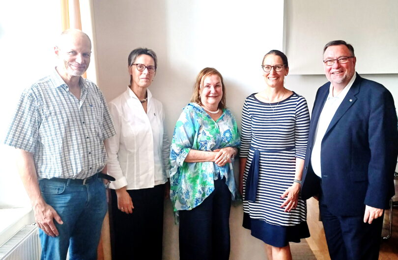 Bericht und Foto: Christiane Giesen – Bei den Neuwahlen der vhs Traunstein wurde Gunther Vigerl (links) in den Gesamtvorstand wiedergewählt, ebenso wie Christiane Giesen (Mitte). Neu in den Vorstand gewählt wurde einstimmig Dr. Birgit Löffler, und Schulrat Clemens Gruber (nicht auf dem Foto) neben Traunsteins Altoberbürgermeister Manfred Kösterke und der vhs Geschäftsführerin Angela Engel. .