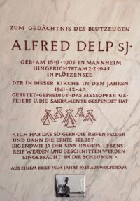Seinen letzten Brief an die Mitbrüder schrieb Alfred Delp am 2. Februar 1945: „Liebe Mitbrüder, nun muß ich doch den anderen Weg nehmen. Das Todesurteil ist beantragt, die Atmosphäre ist so voll Haß und Feindseligkeit, daß mit seiner Verkündung und Vollstreckung zu rechnen ist. Der eigentliche Grund der Verurteilung ist der, daß ich Jesuit bin und geblieben bin. Eine Beziehung zum 20. Juli war nicht nachzuweisen. Auch die Stauffenberg-Belastung ist nicht aufrecht erhalten worden.  Andere Strafanträge, die wirkliche Kenntnis des 20. Juli betrafen, waren viel milder und sachlicher. Die Atmosphäre war so voll Haß und Feindseligkeit. Grundthese: ein Jesuit ist a priori der Feind und Widersacher des Reiches. Auch Moltke wurde sehr häßlich behandelt, weil er uns, besonders Rösch (Jesuitenpater Augustin Rösch gehörte auch dem Kreisauer Kreis an) kannte… . Das war kein Gericht, sondern eine Funktion des Vernichtungswillens. Gegen Mittag werde ich noch zelebrieren und dann in Gottes Namen den Weg seiner Fügung und Führung gehen.“ Das Urteil wurde am gleichen Tag in Plötzensee vollstreckt und Delps Asche auf den Berliner Rieselfeldern verstreut. Auf dem Weg unter dem Galgen sagte er zu zum Gefängnispfarrer: „In wenigen Augenblicken weiß ich mehr als Sie.“