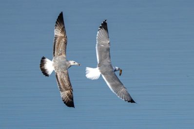 Zur Zeit halten sich in der Hischauer Bucht nur wenige Wintergästen auf. Selbst die Singschwäne machen sich rar. Allerdings lassen sich gelegentlich Kraniche auf der Suche nach einem Schlafplatz in der Bucht nieder. Der Seeadler kann nun bei seinem Vorbeiflug am Turm schon eindeutig als erwachsenes Exemplar bestimmt werden. Silberreiher testen das erste Eis und Großmöwen streiten sich um erbeutet Muschel.
