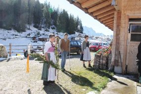 Für Anja ist der Almsommer nach diesem sehr ereignisreichen Tag noch nicht ganz vorbei – eine Woche kehrt sie nochmals auf die Alm zurück, um diese winterfest zu machen und die Almzeit ausklingen zu lassen. Anschließend geht es zurück in den eigenen Trachtenladen nach Warngau im Miesbacher Landkreis. Was Sie sich für die Alm und das Geschäft am meisten wünscht: Für das kommende Jahr einen hoffentlich wieder coronafreien Almsommer! Milchabholung – hoch oben auf der Alm und im heimatlichen Talhof Die Arbeit auf der Alm war für Anja wieder herausfordernd. Seit Mitte Juni versorgte sie die Kühe der Kollers auf der Mordaualm. 17 Kühe zweimal täglich in den Stall treiben um sie morgens und abends zu melken und auch sonst zu betreuen, also füttern, tränken, striegeln und das Wohlbefinden der Tiere stets im Blick haben. Die Milch von der Mordaualm hat Anja den Sommer über mit einem mobilen Tank alle zwei Tage zur Sammelstelle an der deutschen Alpenstraße gefahren, wo sie vom Milchsammelwagen der Molkerei Berchtesgadener Land eingesaugt wurde – außer die Milch kam für den Brotzeit-Käse auf der Alm zum Einsatz. Neben Brotzeiten wurden die Wanderer, die bei dem schönen Sommer bis zum Schluss zahlreich gekommen sind, auch mit verschiedenen selbstgebackenen Kuchen verwöhnt. Seit Montag kümmern sich Josef und Katharina Koller vom