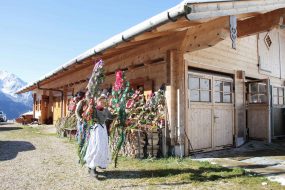 Zuletzt wird die Leitkuh geschmückt. Erst wenn sich die Sennerin in Bewegung setzt, geht’s heimwärts!