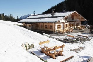 vergangenen Samstag überdeckte die Almwiesen rund um den Almkaser, sodass die Tiere im Stall bleiben mussten.