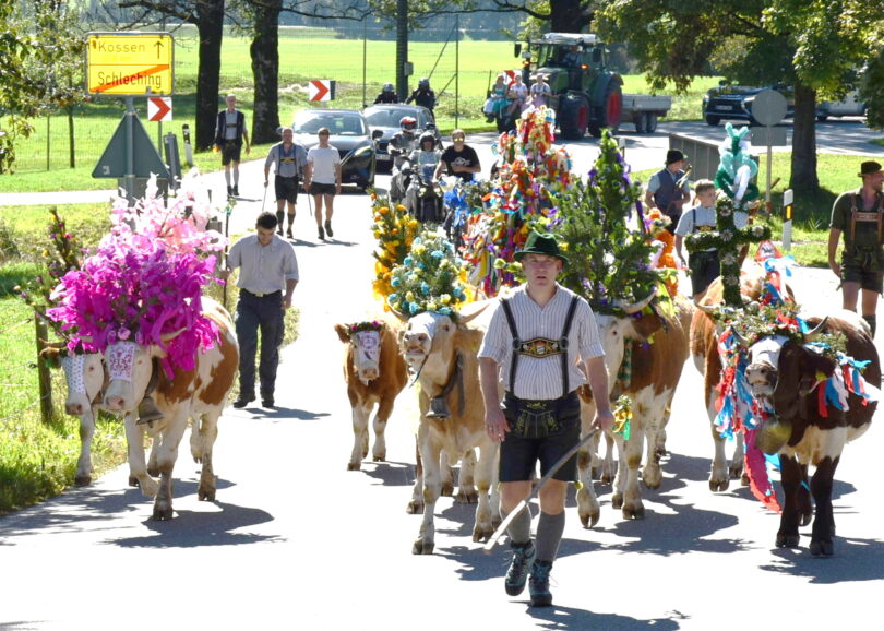 Schleching – Wenn das Wetter schlechter wird und das Gras auf den Almen nicht mehr so üppig wächst, müssen die Rinder, die den Sommer auf der Alm verbracht haben, wieder zurückgebracht werden ins Tal und in den heimischen Stall.