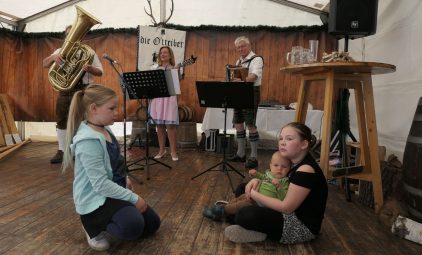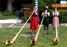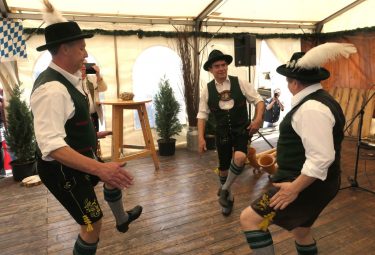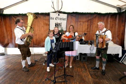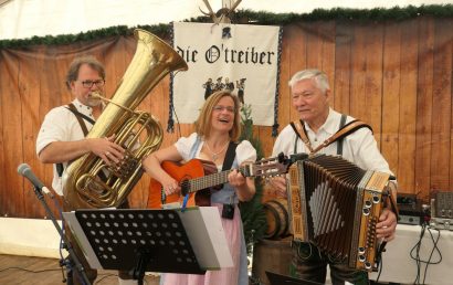 Für die musikalische Umrahmung sorgten die O’Treiber mit Gerhild, Siegi unter Peter. Dazwischen gab es einige Plattler von der Schuhplattler-Gruppe des Vereins. Das Alphorn-Trio, Hilla, Clara und der Vorsitzende, verliehen der Feier die typisch alpenländliche Stimmung eines „Almauftriebs“. Nur die Kühe haben noch gefehlt!