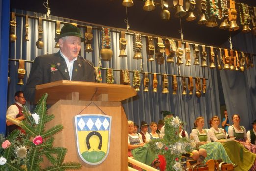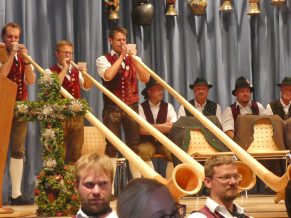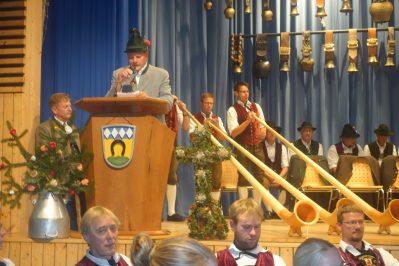 Die Ausrichtung des 70. Oberbayerischen Almbauerntages auf dem Samerberg war mit einem Almbauernheimatabend gesellschaftlicher Höhepunkt und Zeugnis echter Brauchtumsliebe zugleich. In der voll besetzten Samer Halle konnten Bezirksalmbauer Bartholomäus Mayer und Vorsitzender Georg Mair vom Almwirtschaftlichen Verein Oberbayern (AVO) zahlreiche Almleute, Sennerinnen und Senner, Bäuerinnen und Bauern, sowie Ehrengäste willkommen heißen. „Es ist eine reine Freude, wie die Samerbergerinnen und Samerberger ihre Halle für uns hergerichtet haben und es ist schon imposant, was Bezirksalmbauer Bartholomäus Mayer mit seinen Leuten auf die Füße gestellt haben. Zusammen mit der sommerlichen Hauptalmbegehung sind diese beiden Mammutveranstaltungen in einzigartiger Weise von den Samerberger Gastgebern vorbereitet und bewältigt worden“ – so der AVO-Vorsitzende, der zum Thema „Wolf“ und zu den vielen sonstigen Herausforderungen noch sagte: „Wir tun alles, damit es für die Almbauern passt“. „Ein Hoch auf die Almbauern und Almleute, mit ihrem Fleiß, mit dem Offenhalten der Weiden sowie mit ihrer Sorge um Tiere und Pflanzen ermöglichen sie es uns immer wieder, dass wir auf den gepflegten Almen der Hektik des Alltages entfliehen und uns erholen können“ – mit diesen Worten begann Fritz Dräxl die Ansage für den Heimatabend mit einem besonders almerischen Programm. Hierbei wirkten mit die Samer Sänger, die Geschwister Bauer als Gesangsgruppe, Hans Sattlberger mit den Sennerinnen Rosi und Birgit mit Jodler-Einlagen. Ziachspieler Maxi Binder (Fritz Dräxl: „Der Herbert Pixner vom Samerberg“), die Baschtla Stubenmusi von Rossholzen, die Samerberger Alphornbläser und Weisenbläser aus den Reihen der ebenfalls in starker Besetzung aufspielenden Musikkapelle Samerberg unter der Leitung von Benedikt Paul und nicht zuletzt die drei Trachtenvereine aus dem Almbezirk Samerberg-Nussdorf aus Rossholzen, Grainbach und Nussdorf. Ein besonderer Auftritt war von den Samerberger Bäuerinnen mit einer Theatereinlage, deren Inhalt auf jüngste Wolfs-Ereignisse abgestimmt war, unter anderem hieß es dabei: „Der Tierschutz soll nicht nur für den Wolf gelten, sondern auch für unsere Tiere, die wir auf den Almen halten, damit die Landschaft so schön bleibt wie sie ist“. Zum Abschluss spielte die Musikkapelle noch zum Tanz und zur geselligen Unterhaltung auf.