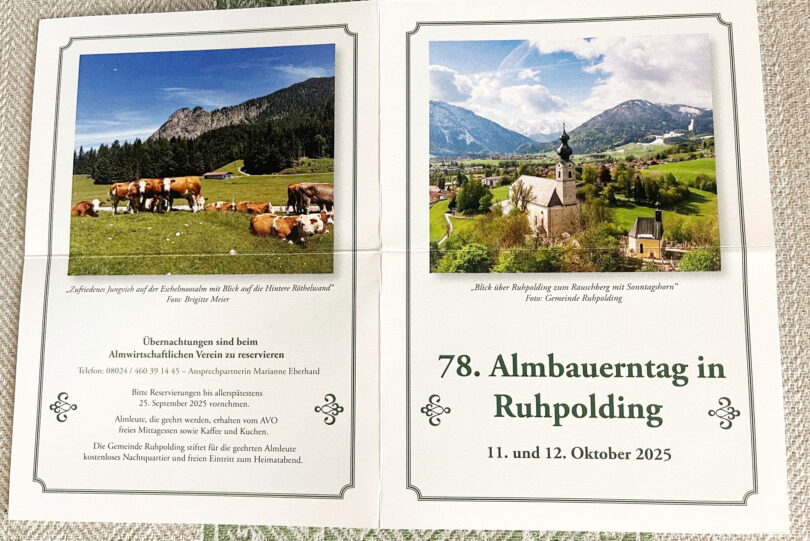 Der inzwischen 78. Almbauerntag des Almwirtschaftlichen Vereins Oberbayern findet am Samstag 11. Oktober und am Sonntag, 12. Oktober in der Gemeinde Ruhpolding statt.
