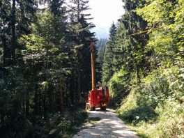 Ab hier gibt es wieder Wegweiser. In 15 Minuten sind wir bei der bewirtschafteten Weißenalm, kehren aber noch nicht ein. Auf breiten Forstwegen marschieren wir in Richtung Adersberg, werden nur einmall kurz von Holzfällerarbeiten gebremst. Den schön gelegenen Berggasthof Adersberg, zu dem man von Rottau aus mit dem Auto herauffahren kann, lassen wir links liegen.