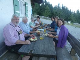Es ist schon eine mehrjährige Tradition, dass Vorsitzender Sebastian Friesinger vom Verein zur Förderung der Regionalentwicklung im Raum Rosenheim (RegRo) zu einem Gedankenaustausch auf die Feichteckalm im Samerberg-Gebiet einlädt. „Auch nach dem vorjährigen Tod von Almbauer Bartholomäus Mayer wollen wir die Tradition fortsetzen“, so Sebastian Friesinger, der sich beim heurigen Treffen bei wunderbaren Feierabend- und Bergwetter mit Hans Auer, dem Vorsitzenden des Tourismusvereins Samerberg austauschte. Themen waren dabei die wirtschaftliche Lage kleiner Unternehmer und der heurige Rosenheimer Bauernherbst. Hierzu wurden für den Kalender die Inhalte Erntedank, Kirchweih und Leonhardi vorbesprochen. Bauernmärkte und Direktvermarkter um Chiemsee, Inn und Mangfall werden ebenfalls gesondert im Bauernherbst-Kalender aufgeführt werden. Mit einem Schnapserl vom Voggenauer-Hof der Familie Mayer bedankte sich Almbäuerin Irmi Mayer und sie sagte dazu: „Im Sinne vom Barthe behalten wir dieses jährliche Treffen bei“.