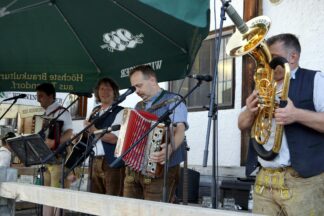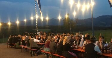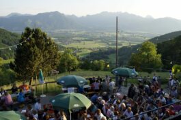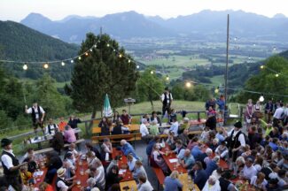 Über 380 Gäste haben bei grandioser Weitsicht Richtung Wendelstein den Sonnenuntergang genossen. Es gab Grillfleisch und Bier vom Fass und zur Unterhaltung spielte die Gruppe „Guad drauf“. Auch die Goaßlschnoizer präsentierten sich mit ein paar Einlagen, begleitet an der Ziach von Maxi Binder. Ein rundum gelungener Abend, mit dem die Baschtler Goaßlschnoizer mehr als zufrieden waren.