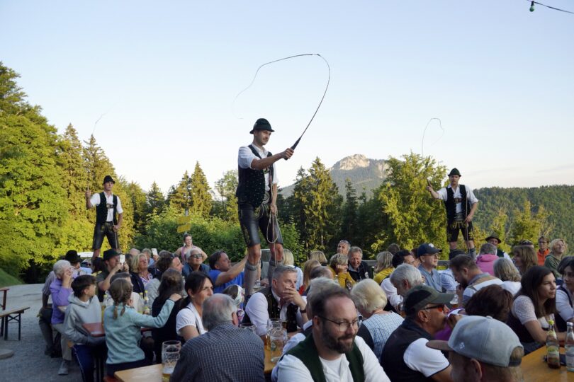 Ein wahrer Sommertraum war der Abend, an dem die Goaßlschnoizer des GTEV Almenrausch Roßholzen zum Almfest auf die Dandlberg Alm eingeladen haben.