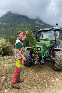Michael Votz (im Bild) war zusammen mit den anderen 11 Bergbauern, die die Leyerer Tratte und die Holzwehrebene beweiden, beim Schwenden. Über die Unterstützung der Freiwilligen freuten Sie sich sehr, denn als Nebenerwerbs-Landwirte ist diese aufwändige Handarbeit fast nicht mehr alleine zu bewältigen. (© Milchwerke Berchtesgadener Land)