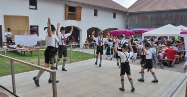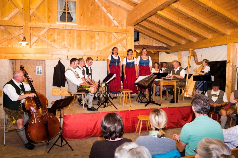 Foto: Rainer Nitzsche – Hans Berger mit seinem Ensemble bei einem Almsommer-Auftrtitt auf der Käseralm am Samerberg