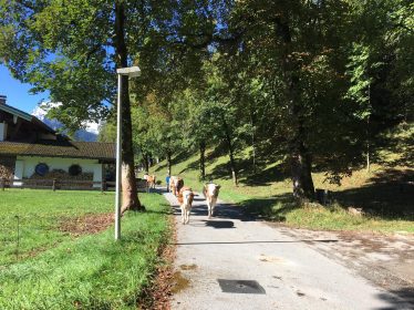 Die Kühe des Almbauern vom Unteraschaulehen in Bischofswiesen auf dem Weg nach Hause