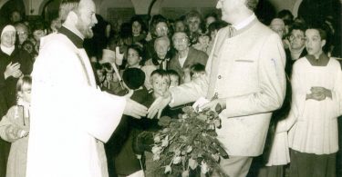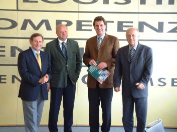 Bilder: Anton Hötzelsperger – Alois Glück mit Samerberger Musikanten auf der Hochries und Alois Glück im Logistik-Kompetenz-Zentrum in Prien