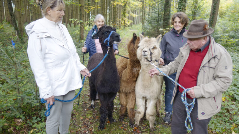 Ein immer wieder gerne angenommener Programmpunkt beim Priener Seniorenprogramm sind Alpaka-Wanderungen mit Anneliese Rosenwink aus Prutdorf im ehemaligen Wildenwarter Gemeindegebiet. Jüngst herrschten schönste Herbst-, Wander- und Waldstimmungen bei einem entspannten Spaziergang zu dem gerade diese Tiere einladen.