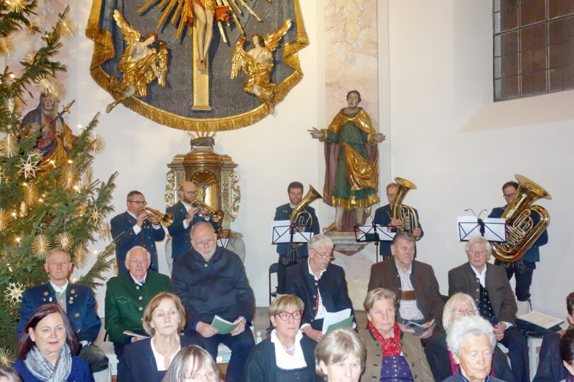 Die Quartl-Geigenmusi und die Bläser der Musikkapelle Reit im Winkl beeindruckten mit wunderschönen Melodien und Weisen. Pfarrer Martin Straßer sprach die verbindenden Worte und sagte unter anderem: „Weihnachten ist eine frohe Botschaft, wobei mit der Geburt Christi die Liebe Gottes Mensch geworden ist.“ Frohmachend sei auch der Wein, den er segnete und eine Flasche an Gabi Reiserer überreichte, die Leiterin des seit nunmehr 20 Jahren bestehenden Koasawinkl Singkreises. Ein stimmungsvoller Abschluss war das von allen in der Kirche gesungene „Stille Nacht“ und der einsetzende Klang der Kirchenglocken.