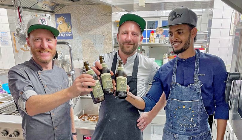 Beim Gasthaus Alpenrose in Grainbach auf dem Samerberg kann man nicht nur vorzüglich essen, sondern neuerdings auch das neue Aschauer Gamsbier genießen. Fotograf Herbert Reiter hat die Bierprobe bei der Küchenbrigade unter der Leitung von Florian Lerche sowie ein paar weitere Eindrücke festgehalten.