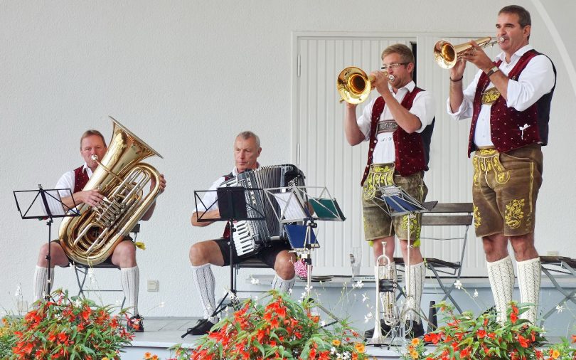 Feines Blech, froh gestimmt und manchmal a bissal frech: Die Heuberg Boarischen aus dem sonnigen Inntal spielen am Donnerstag, 15. Juli, von 19:00 bis 21:30 Uhr zünftig im Biergarten des Kurhauses Bad Aibling auf. Die vier Musikanten kommen aus Nußdorf am Inn und unterhalten das Publikum mit altbayerischer Wirtshausmusik für Jedermann. Frisch, authentisch und schwungvoll präsentieren sie traditionelle Kultur und bayerische Lebensart.