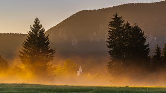 Aktuelle Bilder: Rainer Nitzsche – In einem besonderen Licht zeigte sich die Kirche St. Ägidius und Nikolaus in Grainbach am Sonntagmorgen bei der aufgehenden Sonne