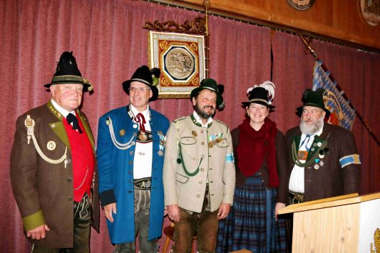 v.l. Günther Hochhäuser Stellvertreter und Gaukassier, Manfred Ortner Stellvertreter, Gauhauptmann Hans Rucker, Verbindungsmaketenderin Brigitte Meier, Revisor Lechner