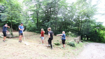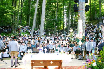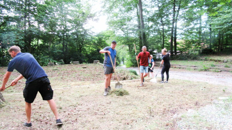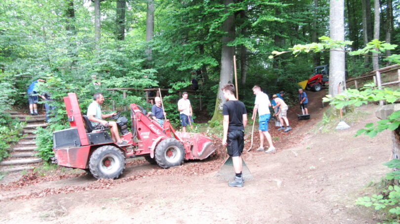So galt es nun unter Einsatz von Maschienen, technischem Arbeitsgerät und viel Handarbeit das “Bürgl”, wo auch diesmal wieder der Festgottesdienst stattfinden wird, festtauglich zu machen. Ansonsten findet hier das traditionelle Waldfest statt. Es galt witterungsbedingte Unebenheiten auszugleichen, Bewuchs zurück zu schneiden, Unterstand und Toilettenanlage zu ertüchtigen und technische Anlagen zu installieren. Dies unter der Anleitung von Festleiter Konrad Stuffer und Vorstand Peter Bichler, welche sich erfreut zeigten über den Arbeitseinsatz der jungen Vereinsmitglieder. An gleicher Selle fand auch 2013 der Festgottesdienst mit mehreren tausend Trachtlern statt. So vorbereitet will man sich auch heuer wieder zeigen