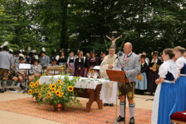 Die Zusammenarbeit mit den Patenvereinen aus Rohrdorf, Neubeuern und Rosholzen, die unter anderem die Festbühne bereitgestellt hatten, war von kameradschaftlicher Verbundenheit geprägt. Diese Einheit in der Trachtensache zeigte sich eindrucksvoll beim Festgottesdienst am Bürgl, an dem über 4.200 Teilnehmer mitwirkten. Trotz der begrenzten Platzkapazitäten herrschten Gelassenheit und Verständnis, auch wenn nicht alle Besucher den Altarbereich einsehen konnten. Dank der Unterstützung durch Ortsvereine, den Festwirt und Helfer aus Nachbarorten konnte die unerwartet hohe Zahl an Gästen ausreichend mit Speisen und Getränken versorgt werden.