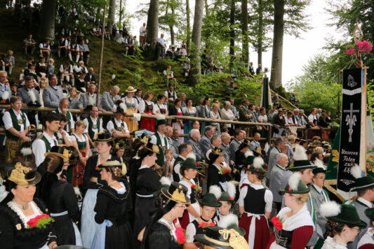 Bericht und Fotos: Thomas Schwitteck – Schöne Erinnerungen: Gauvorstand Pankratz Perfler begrüßt die Teilnehmer vor dem Gottesdienst – dichte Reihen beim Festgottesdienst – Frauen des Patenvereins Rohrdorf, der den Meistpreis erzielte – Alt und Jung vereint im Festzug.