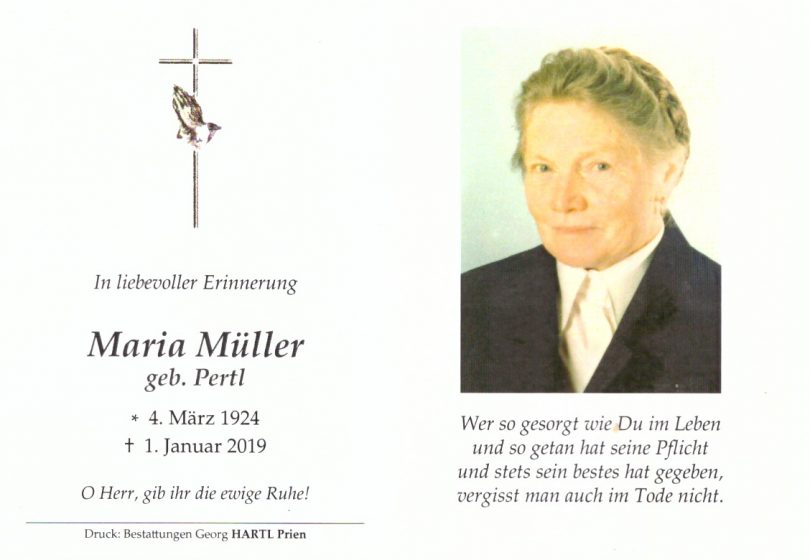 Sterbefoto: Maria Müller aus Prien-Stetten