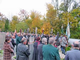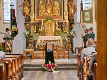 Foto: Inge Erb, Requiem mit der Fahne des GTEV Söllhuben und der Standarte des Gauverbandes I und Porträt Bartl Hollinger.