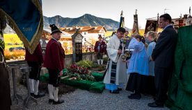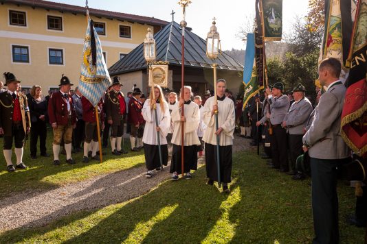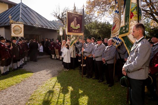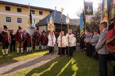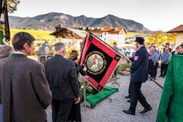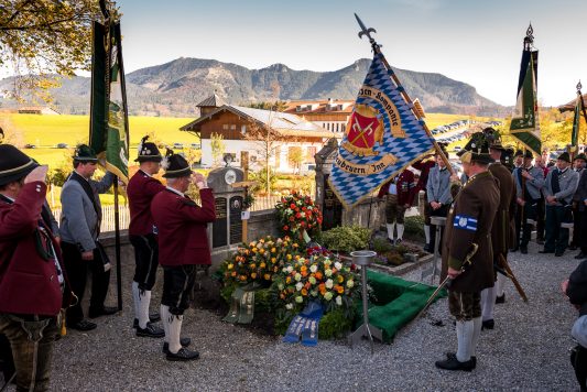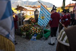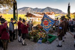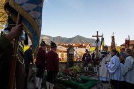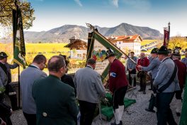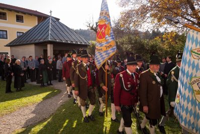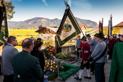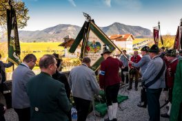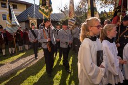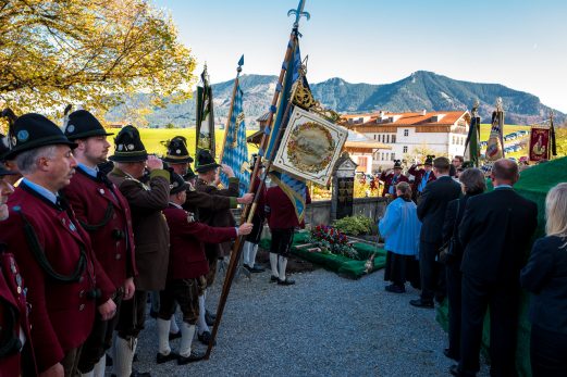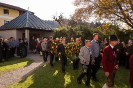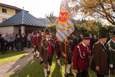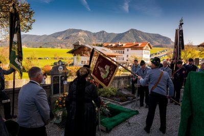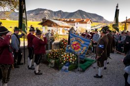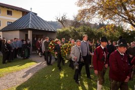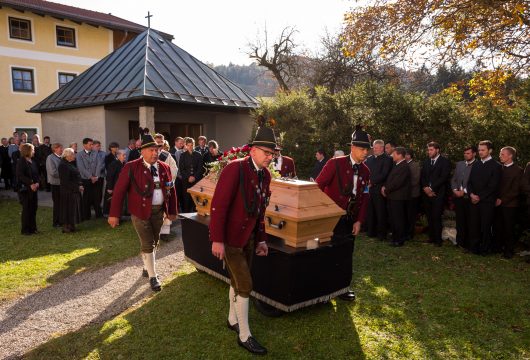 Beim Trauergottesdienst in der überfüllten Kirche stellte Diakon Günter Schmitzberger die Frage „Warum?“ an den Anfang seiner Gedanken. „Auch ich kann keine Antwort geben, sondern Euch alle nur bitten, dass wir zusammen Aushalten. Auch Jesus hat sich am Kreuz nicht untergehen lassen, er wurde aufgefangen und er ist auferstanden“, so der Diakon, der in seiner Predigt auf die Hoffnungslosigkeit und Sprachlosigkeit einging und er zitierte aus dem Korinther-Brief mit den Worten: „Das Leben ist ein Schatz in einem zerbrechlichen Gefäß“. In seinen weiteren Ausführungen charakterisierte Günter Schmitzberger den Verstorbenen als überaus hilfsbereit, als fürsorglichen Familienvater, als einen Bauern und Almbauern, dem in der Landwirtschaft und Tierhaltung das Göttliche besonders wichtig war. „Deswegen bat er mich bei der heurigen Hauptalmbegehung, dass diese mit einer Andacht beginnen möge“. Der Diakon sagte weiter: „Der Hofbrand machte Barthi Mayer immer kraftloser, er stand vor einem unüberwindbaren Berg, wir dürfen jetzt die Familie nicht alleine lassen, dann ist der nunmehrige Berg überwindbar. Helft zusammen und glaubt an Gott, den guten Hirten“. Bei den Nachrufen in der Kirche würdigte Bürgermeister Georg Huber den Verstorbenen als engagierten Gemeinderat, in dessen zwölfjähriger Amtszeit unter anderem die Errichtung der Grundschule, der Neubau des Sportplatzes und der Bau des Feuerwehrhauses in Rossholzen erfolgte. Auch im Tourismusverein brachte Mayer sein Wissen als Landwirt, Anbieter von Urlaub auf dem Bauernhof und Almbewirtschafter ein, unvergesslich ist ein großes Hoffest auf seinem Bauernhof in Schilding im Jahr 2005. Vielfache Verdienste erwarb sich Bartholomäus Mayer für den Leonhardiverein, dessen Vorsitzender und Motor er seit der Wiedergründung war, viele Leonhardiritte trugen die Handschrift von ihm. Vorstand Peter Sattlberger vom Trachtenverein Hochries-Samerberg erinnerte daran, dass Barthi Mayer bei der Gruppe der Historischen Samer und bei den bisherigen Freilichtspielen stets verlässlich dabei war. Georg Mair, Vorsitzender des Almwirtschaftlichen Vereins Oberbayern (AVO) sagte nach gut einer Woche des gemeinsamen Erntedankfestes der Almbauern auf dem Samerberg: „Barthi Mayer war ein überzeugter Landwirt, Almbauer und Schnapsbrenner mit vielerlei Fähigkeiten, der viele Jahre auf der Seitenalm und bis zuletzt auf der Feichteckalm wirkte. Sein enormes Wissen gab er gerne an Interessierte, Gäste und Jüngere weiter“, so der AVO-Vorsitzende, der Mayer noch für seine verantwortungsvolle Aufgabe als Bezirksalmbauer für Samerberg und Nussdorf seit dem Jahr 2009 dankte. Weitere Dankesworte kamen von der Bergwacht Rosenheim-Samerberg, bei der  Barthi Mayer in den 70er Jahren mit einer Ausbildung begann und der er bis zuletzt als Förderer zugeneigt war. Bei der Gebirgsschützenkompanie Samerberg war Bartholomäus Mayer vor 40 Jahren Gründungsmitglied und sehr lange als Leutnant und Kassier der Vorstandschaft angehörig. „Bartholomäus Mayer war immer ein aufrechter Schütze und er stand immer  Gewehr bei Fuß, er hinterlässt eine unglaublich große Lücke“, so GSK-Hauptmann Fritz Dräxl, dessen Mitglieder als Sargträger und mit einem dreifachen Ehrensalut deutlich sichtbar machten, dass sie einen beliebten Kameraden verloren haben. Weitere Zeichen der Verbundenheit und Wertschätzung waren die vielen Fahnenabordnungen, dabei waren die Fahnen der drei Trachtenvereine Grainbach, Rossholzen und Nussdorf, die Abordnung der Rossholzener Feuerwehr, die Fahnen der GSK-Gruppen Neubeuern und Samerberg sowie die Standarten des GSK-Bataillons Inn-Chiemgau und des Leonhardivereins Rossholzen.  Die musikalische Gestaltung der Trauerfeierlichkeiten übernahmen Samerberger Bläser sowie der Kirchenchor Samerberg. Der Leonhardiritt, der für Samstag, 28. Oktober vorgesehen war, ist inzwischen abgesagt worden.