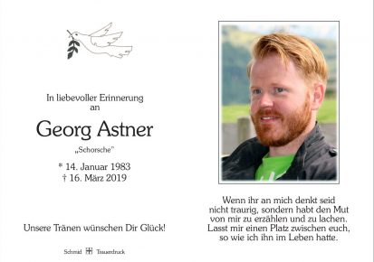 Bei der Trauerfeier erinnerte Diakon Günter Schmitzberger an das allzu kurze Leben des Verstorbenen sowie an seine hohe Beliebtheit in der Familie, bei seinen Freunden und bei seinen Kollegen. „Warum starb Georg so früh mitten im Leben stehend, was hätten wir nicht noch alles miteinander erleben können?  Warum müssen wir hergeben, was uns so liebenswert und unendlich wertvoll war?  Warum musste Georg genau zu diesem Zeitpunkt an dieser Stelle sein?“ – all diese Fragen der betroffenen Angehörigen und Freunde konnte auch der Diakon nicht mit einer deutlichen Antwort zufriedenstellend lösen, dazu sagte er: „Der Glauben ist eine Beziehung zu Gott, die in solchen Momenten und Situationen aufs Äußerste, bis zum Zerreißen gespannt ist. Deshalb helfen wir uns in dieser traurigen Begebenheit gegenseitig mit folgenden Gedanken: Gut, dass wir alle gekommen sind, denn Gott hat nur unseren Mund, um anderen Trost zu zusprechen, Gott hat nur unsere Füße, um auf den anderen zuzugehen und Gott hat nur unsere Hände, um den anderen zu umarmen“. So können wir den Angehörigen Kraft schenken und ihnen spüren lassen, dass Gott trotzdem da ist. Günter Schmitzberger erinnerte in seinem Nachruf daran, dass Georg Astner ein außergewöhnlich feiner Kerl war, dessen fröhliche und menschliche Art, dessen Lachen, Humor und Unbeschwertheit sowie dessen selbstgemachten Burger, die geselligen Grillabende und die witzigen Ideen für Faschingskostüme unvergesslich sind. An einen Kameraden mit viel Gemeinschaftssinn erinnerten auch die Kollegen der Firma Multitest und vom Veteranenverein Rossholzen-Steinkirchen durch dessen Vorstand Simon Deindl. Für die musikalische Gestaltung der Trauerfeier für Georg Astner sorgten Samerberger Weisenbläser und die Gesangsgruppe Rokiwa.