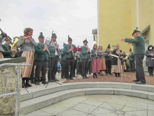 Am offenen Grab erinnerte Bürgermeisterin Irene Biebl-Daiber an den schmerzlichen Verlust für die Gemeinde, für den Abwasser- und Umweltverband Chiemsee sowie für die Musikkapelle Bernau. Zum Gemeinderatskollegen sagte sie: „Seine Beiträge im Gemeinderat waren immer von Sachlichkeit geprägt, er hat nie seine Person in den Vordergrund gestellt, für Schorsch war immer die sachliche und gute Lösung des Problems wichtig. Gerade bei Themen, die den Tiefbau betrafen oder Brückenbauten, wusste er auf jede Frage eine Antwort. Wenn es in der Verwaltung Probleme oder Fragen gab, dann kam vom Schorsch immer: das schau ich mir schnell an, da fahr ich schnell hin oder das weiß ich noch, des war so…“. 20 Jahre bereicherte er als Bernauer Vertreter die Sitzungen des Abwasser- und Umweltverbandes durch sein fundiertes Fachwissen. Als junger Bub trat Georg Bauer mit seinem Waldhorn der Musikkapelle bei, für diese war er über 50 Jahre nicht nur ein wertvoller Aktiver bei weltlichen und kirchlichen Auftritten, sondern auch ein guter Organisator. Zudem war er Alphornspieler und seit der Gründung des Vereins für die Musikapelle Bernau war er auch dessen Vorsitzender.