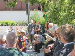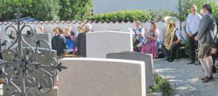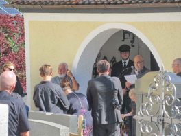 „Hans Steinbichler hat sich vor neun Jahren beim Jubiläum 20 Jahre Naturschutzgebiet Geigelstein mit der Prientaler Bevölkerung und den Almbauern ausgesöhnt, heute hat ihm das Obere Priental viel zu verdanken, ohne ihn und den Naturschützern gäbe es das Bergsteigerdorf Sachrang so nicht, wie es heute gut dasteht“ – mit diesen Worten würdigte Georg Antretter vom BR-Fernsehen den Verstorbenen. Und Klaus Gerosa, Freund und journalistischer Weggefährte seit 1975 sprach von einem bewegten Leben, das jede Minute für kostbar hielt, so dass Hans Steinbichler keinen Windhauch, sondern Stürme entfesselte. Gerosa übermittelte auch die Grüße vom Bund Naturschutz, von dessen Präsidenten Prof. Hubert Weiger sowie von den verschiedenen Bürgerinitiativen und Verbänden, die an der Seite von Hans Steinbichler für Schutz und Gerechtigkeit in der Natur sorgten. „Der Hans war nicht nur in der Welt und in den Bergen unterwegs, seit 1971 war er mit seiner Frau Elfriede auch beim Trachtenverein Hittenkirchen daheim, er hat sich vielfach, unter anderem mit Filmaufnahmen vom gesamten Gaufest 1986, mit Musik, beim Gesang mit dem Hittenkirchener Dreigesang sowie bei vielen Veranstaltungsbesuchen in unserem Trachtenheim verdient gemacht“ – mit diesen Worten würdigte Vorstand Christoph Kaufmann die 49jährige Vereinstreue und er dankte ihm noch für den Rat von ihm, den er als junger Vorstand bekam: „Sei immer ehrlich, halte es mit den Jungen und mit den Alten gut, dann hast Du einen stimmigen Verein!“. Kaufmann legte im Beisein der Fahnenabordnung einen Kranz nieder. „Es gäbe noch so vieles zu sagen über den Hans, aber das Chiemgau-Kapítel mit ihm ist jetzt zu Ende“ – so am Rande der Trauerfeier Hans-Jörg Decker, der mit einigen Journalisten-Kollegen der sogenannten Westerbuchberg-Runde Abschied von einem guten Kameraden nahm.