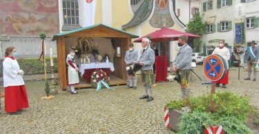 Franz Moritz war ein geselliger Mensch und brachte sich gerne und vielfältig für die Gesellschaft ein. So gehörte Moritz, dem der Sonntags-Gottesdienst heilig war, zwölf Jahre der Kirchenverwaltung an. Am offenen Grab sprach Hubert Lohberger von der Metzgerinnung Rosenheim-Bad Aibling-Wasserburg und auch names des Metzgerburschenvereins mit den Worten: „Der Franz führte 50 Jahre einen vorbildhaften und bodenständigen Handwerksbetrieb und er war auch sechs Jahre lang (1990 – 1996) im Vorstand der Metzger-Innung tätig“. Für das Priener Bauerntheater dankte Vorsitzende Brigitte Sperger dafür, dass Franz Moritz nicht nur dem Verein lange Jahre angehörte, sondern diesen bei Auf- und Abbauten sowie bei Generalproben mit guten Brotzeiten sponsorte. Seit 1973 war Franz Moritz beim Priener Trachtenverein Mitglied, Vorstand Klaus Kollmannsberger dankte seinerseits für die Unterstützung bei Veranstaltungen, Ausflügen und für die Jugend. In der Priener Liedertafel war Franz Moritz nicht nur ein langjähriges Mitglied, er gehörte auch schon dem Männerchor ab 1974 an und war dann für den ab 1976 gemischten Chor in der Zeit von 1980 bis 1988 Zweiter Vorsitzender. Dafür bedankte sich Vorstand Rainer Mühl und Lothar Rechberger erinnerte an lustige Begebenheiten von einer früheren Gesangsprobe im Schlachthaus. Florian Wunderle von der Königlich Privilegierten Feuerschützengesellschaft hätte heuer gerne Franz Moritz für seine 50jährige Vereinszugehörigkeit geehrt, doch die Versammlung ist coronabedingt ausgefallen. 43 Jahre lang gehörte nach den Worten von Vorstand Georg Fischer der Verstorbene der Krieger- und Soldatenkameradschaft an und ganze 47 Jahre war er auch Mitglied beim Priener Rauchclub. Eine weitere Fahnenabordnung kam von der Priener Gebirgsschützenkompanie, dessen passives Mitglied Franz Moritz ebenso war wie beim Obst- und Gartenbauverein sowie beim Priener Kulturförderverein. Alle Vereinsvertreter und Redner dankten für die stets großzügige Unterstützung mit Fleisch- und Wurstwaren bei den Vereins-Ereignissen und an die treue Teilnahme bei Vereinsausflügen. Auf dem Friedhof spielte eine große Beerdigungs-Besetzung der Priener Blaskapelle, deren Gönner und Fördervereinsmitglied Franz Moritz ebenfalls war. Die Blasmusikweise vom „Guten Kameraden“ galt einem Mann, der über seine Familie und seinen Betrieb hinaus viel für die Gemeinschaft im Ort leistete.
