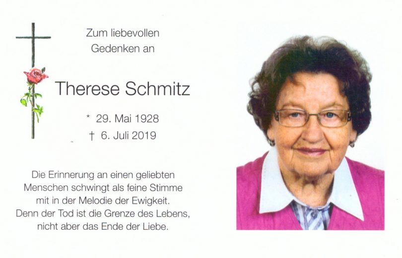 Sterbefoto: Therese Schmitz, verstarb im Alter von 91 Jahren