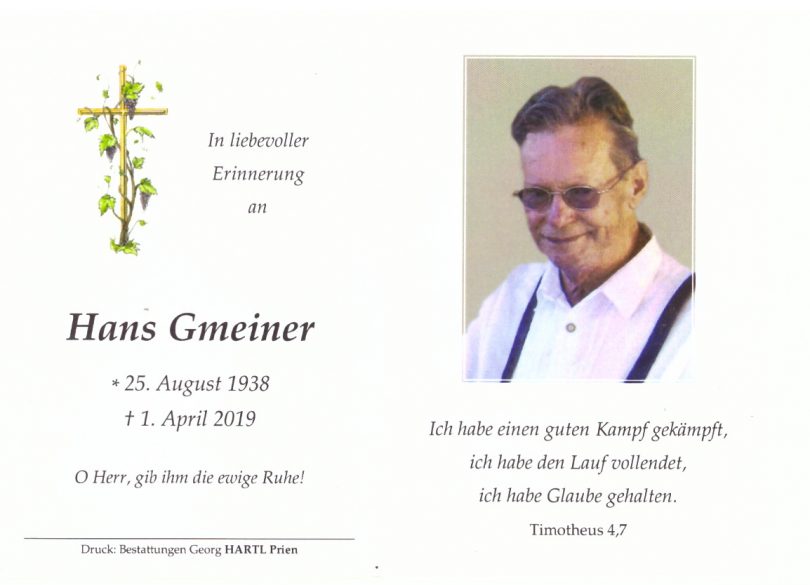 Sterbefoto: Hans Gmeiner