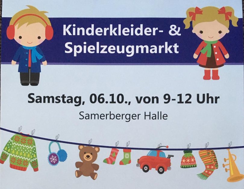 Am Samstag, 6. Okt. gibt es von 9-12 Uhr einen Kinderkleider & Spielzeugmarkt in der Samerberger Halle. Angeboten werden Kinder-, Sport-, Trachten- & Wintersportbekleidung, Wintersportartikel, Accessoires, Spielwaren, Schuhe und vieles mehr…Veranstalter ist der Elternbeirat der Grundschule Samerberg.