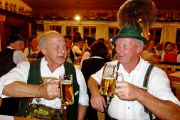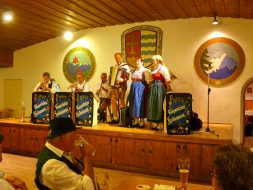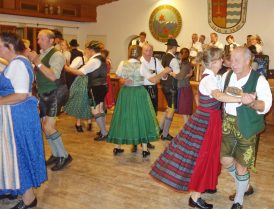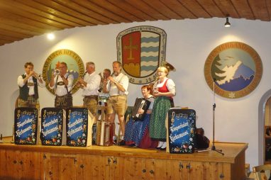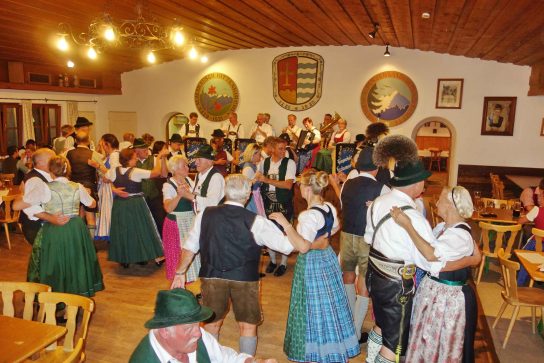 Fotos: Hötzelsperger – Eindrücke vom Kirtatanz am Abend im Trachtenheim, u.a. Ampertaler Kirtamusi mit den Geschwistern Laschinger sowie Hans Schäffler vom Trachtenverein Wallgau (li.) mit Vorstand Christoph Kaufmann vom GTEV Hittenkirchen.