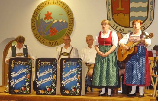 Am Abend ist dann traditioneller Kirtatanz. Heuer spielten hierzu erstmals die Ampertaler Musikanten aus der Hallertau auf. „Das ist heuer ein Novum, bisher hatten wir immer Musikgruppen aus dem Salzburger und Tiroler Land, unter anderem Franz Posch und seine Innbrüggler. Diese bekannte Kapelle versuchen wir in zwei Jahren zum 100jährigen Vereinsjubiläum wieder für Hittenkirchen gewinnen zu können“ – so Musikwart Michael Berneder, der sich freute, dass die Ampertaler Kirtamusi mit der Gesangsgruppe der Geschwister Laschinger für heuer zu gewinnen war. Mit viel Humor und Witz (unter anderem: „Bei manchen Leuten sind Handschellen immer noch das beste Abführmittel“) unterhielten sie und mit ihrer Musik (u.a. Schottisch, Boarisch, Walzer, Chiemgauer Dreher oder Zwiefach) lockten sie auf die am Anfang zu kleine Tanzfläche. Die Vergrößerung war notwendig, weil unter den vielen Tanzwilligen auch eine große Schar von Jugendlichen war, die heuer bei Tanzwart Florian Wörndl im Kurs die ersten Tanzschritte erlernten. Nicht zum ersten, sondern seit 20 Jahren mehrmals im Jahr kommt Hans Schäffler vom Trachtenverein Wallgau aus dem Werdenfelser Land zu den Hittenkirchener Tanzveranstaltungen. „In Hittenkirchen ist es immer schön, hier spürt man, dass der Trachtenverein wie eine Familie geführt wird und sie haben immer eine gute Musik“, so der Wallgauer, der bis 2008 selbst und 22 Jahre lang Vorstand seines Vereins war, der immer wieder in Begleitung von mehreren Leuten dem Chiemgau die Ehre gibt und der inzwischen mit Christoph Kaufmann eine persönliche Freundschaft pflegt – ganz im Sinne des ehrwürdigen Kirtatages von Hittenkirchen.