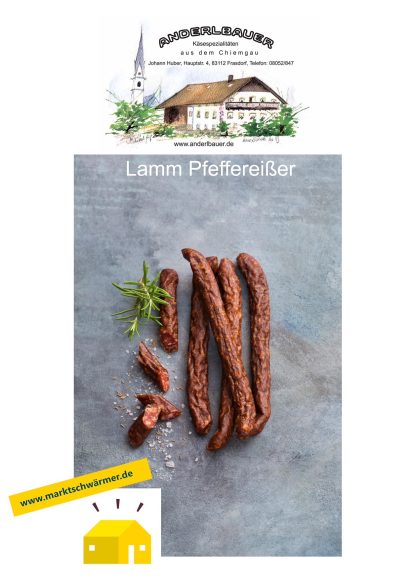 Beim Biobetrieb Anderlbauer in Frasdorf ist es möglich, deren regionale Bio-Produkte in ihrem Hofladen oder über die Plattform www.marktschwaermer.de zu erwerben. Aktuell gibt es als besondere Spezialität Pfefferbeißer aus Lammfleisch.