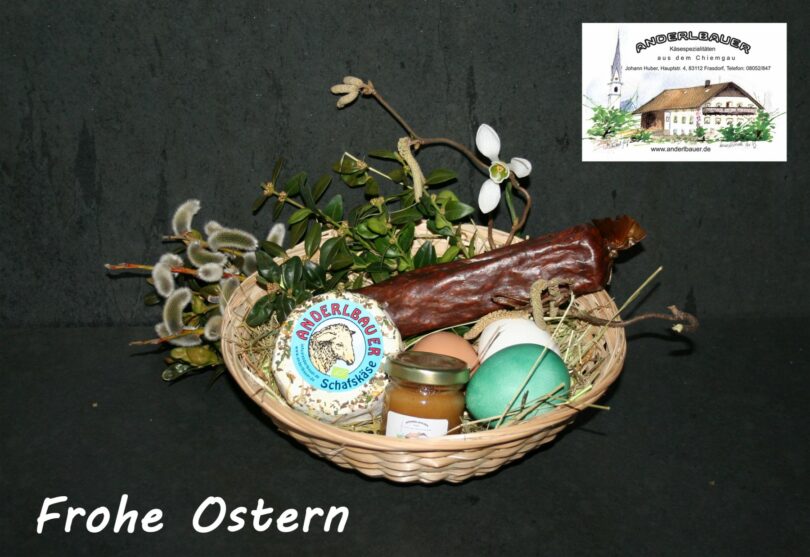 Die Biokäserei Anderlbauer wünscht frohe Ostern und eine genussvolle Frühlingszeit mit regionalen Spezialitäten aus dem Chiemgau. Im Hofladen in Frasdorf finden Besucher eine vielfältige Auswahl an Bio-Käse, hausgemachten Köstlichkeiten und liebevoll zusammengestellten Geschenkkörben. Über Ostern ist der Hofladen zusätzlich am Dienstag, den 22. April 2025, geöffnet.