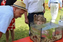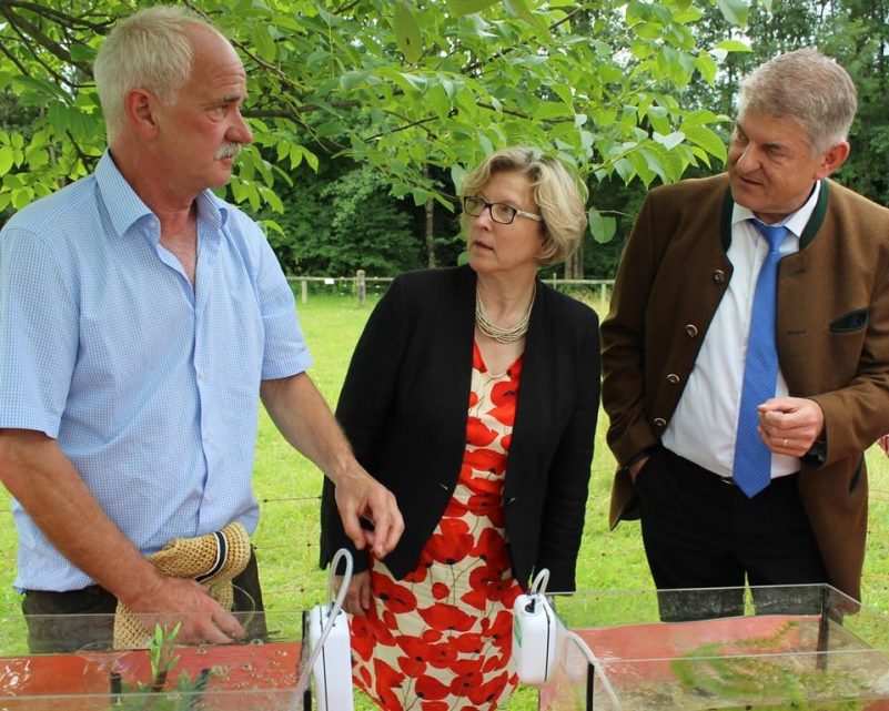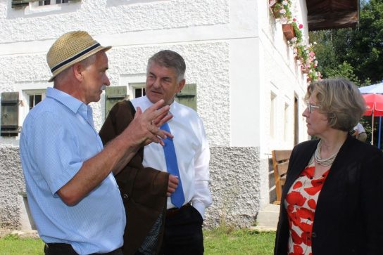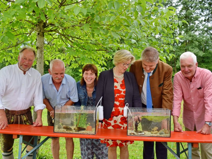 Da trauten viele Besucher ihren Augen nicht: Ein echter Krebs tummelt sich da im Aquarium vor dem Häuslmannhof im Bauernhausmuseum Amerang! So was gibt es in den oberbayerischen Seen? „Früher gab es die Edelkrebse im Chiemsee“, klärt der Fischereifachberater des Bezirks Oberbayern Dr. Ulrich Wunner auf. „Dann wurden amerikanische Krebse importiert und schleppten Krankheiten ein. Jetzt  wollen wir die Tiere wieder in heimische Gewässer  bringen. Derzeit haben wir sie vor allem in Baggerseen.“ Es war nicht das einzige Aha-Erlebnis an einem informativen Aktionstag zum Thema Fischerei im Bauernhausmuseum des Bezirks Oberbayern. Die Fischereifachberatung stellte sich vor, und dazu wurde auch eine kleine, aber feine Fotoausstellung über die Fischer an den oberbayerischen Seen eröffnet. „Das Angeln und die Fachberatung für Fischerei haben eine lange Tradition“, sagte Bezirkstagsvizepräsident Michael Asam. „Sie ist geprägt von der engen Wechselwirkung zwischen Mensch und Natur. Bereits 1908 bestellten die Kreise, aus denen später die Bezirke hervorgingen, Kreiswanderlehrer für Fischerei, um das alte Handwerk der Fischerei zu pflegen und zu fördern. “