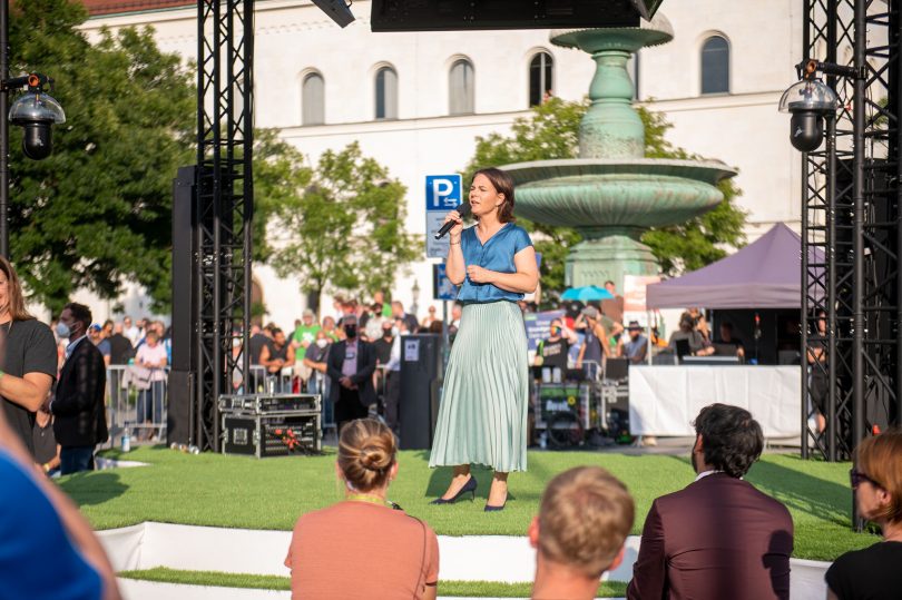 Interessierte und Fans der grünen Spitzenkandidatin juckte das freilich wenig, die waren zahlreich gekommen – mit U-Bahn oder Radl. Nach der Landtags-Grünen Katharina Schulze und Bürgermeisterin Katrin Habenschaden trat dann auch Baerbock ans Mikrofon.