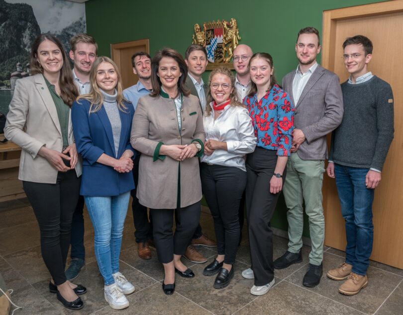 Das Foto zeigt Landwirtschaftsministerin Michaela Kaniber gemeinsam mit dem Vorstand der Bayerischen Jungbauernschaft im Ministerium.