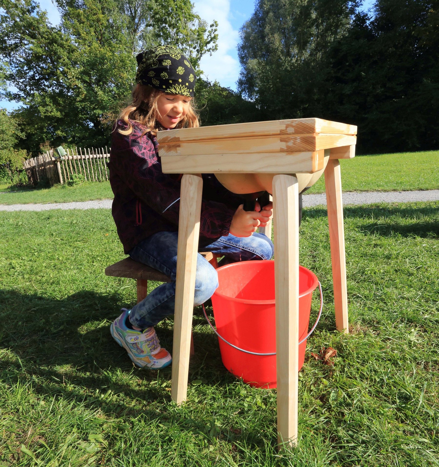 Neben den Aktionen rund um den Apfel, können Groß und Klein ihre Fingerfertigkeit beim Melkwettbewerb unter Beweis stellen. © Bezirk Oberbayern, Archiv BHM, Fotografie Gerhard Nixdorf.