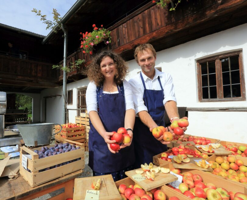 Ab 11:00 Uhr bestimmen die Pomologen Maria Seidinger und Georg Loferer mitgebrachte Äpfel und Birnen. Bitte bringen Sie hierfür drei bis fünf Früchte pro Sorte samt Stielansatz und Blättern mit. Um 11:30 Uhr und um 14:30 Uhr hält der Sortenkundler Georg Loferer Vorträge zum Thema „Paradiesapfel und Würgebirne – Alte Sorten neu entdeckt“.Für Kinder gibt es in der Apfel-Werkstatt viel zu entdecken: An einer historischen Obstpresse können sie beim Pressen der Früchte helfen und den frisch gepressten naturtrüben Apfelsaft probieren. Zudem können sie gemeinsam mit dem Museumspädagogen David Kemmer einen Apfelwurm als Schlüsselanhänger oder bunte Papieräpfel basteln. Eine Saftverkostung mit verschiedenen Fruchtsäften sowie weitere Obstprodukte wie Edelbrände und Apfelgebäck laden zum Probieren ein.