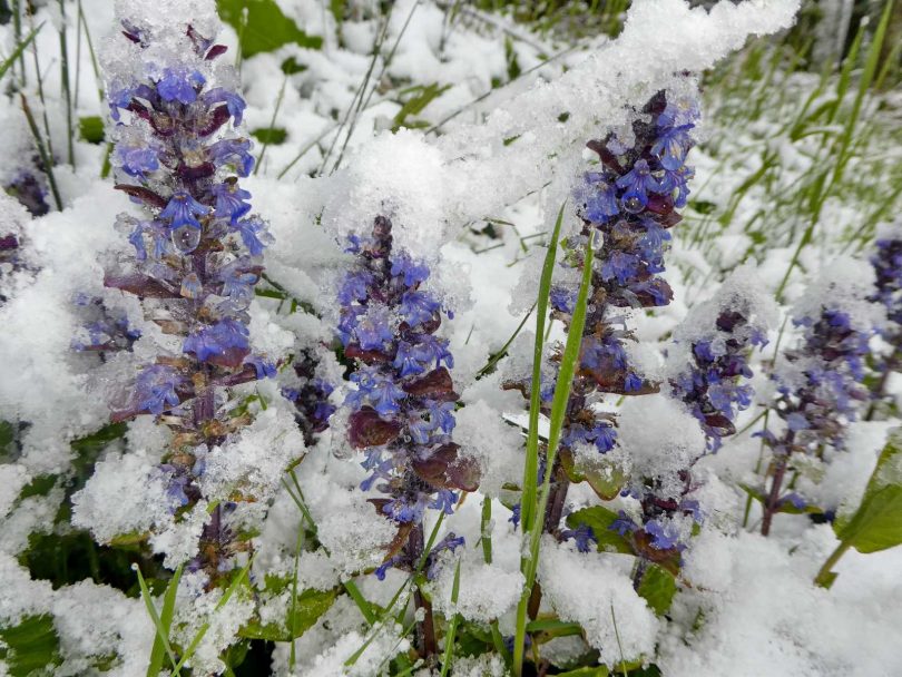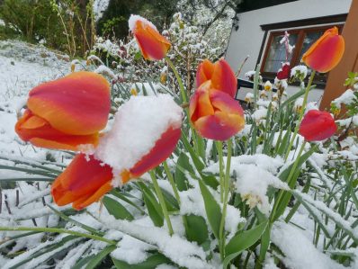 Der Frühling macht zur Zeit eine Pause – dennoch zeigen sich zwischen frisch gefallenem Schnee noch farbige Frühjahrsmerkmale in der Natur. Lange wird sich der Spät-Winter nicht halten können und dann wird sich der Frühling wieder in seiner vollen Blüten- und Farbenpracht präsentieren.